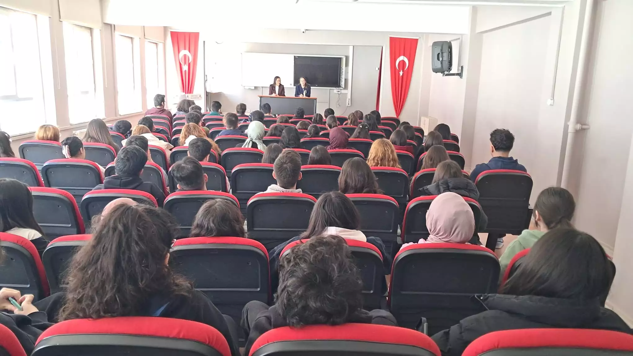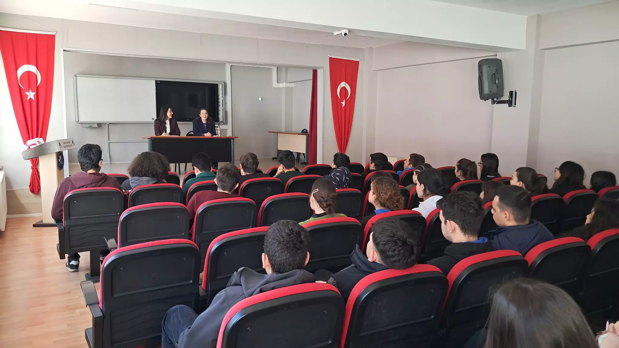 11 Mart 2026 tarihinde Fakültemiz öğretim elemanlarından Arş. Gör. Dr. Ranegül Camız ve Arş. Gör. Dr. Ayşe Karakimseli Sezgin tarafından Hidayet Aydoğan Sosyal Bilimler Lisesi'nde 12. sınıf öğrencileriyle hukuk eğitimi ve hukuk fakültesi mezunlarının yapabileceği meslekler üzerine bir söyleşi gerçekleştirilmiştir.